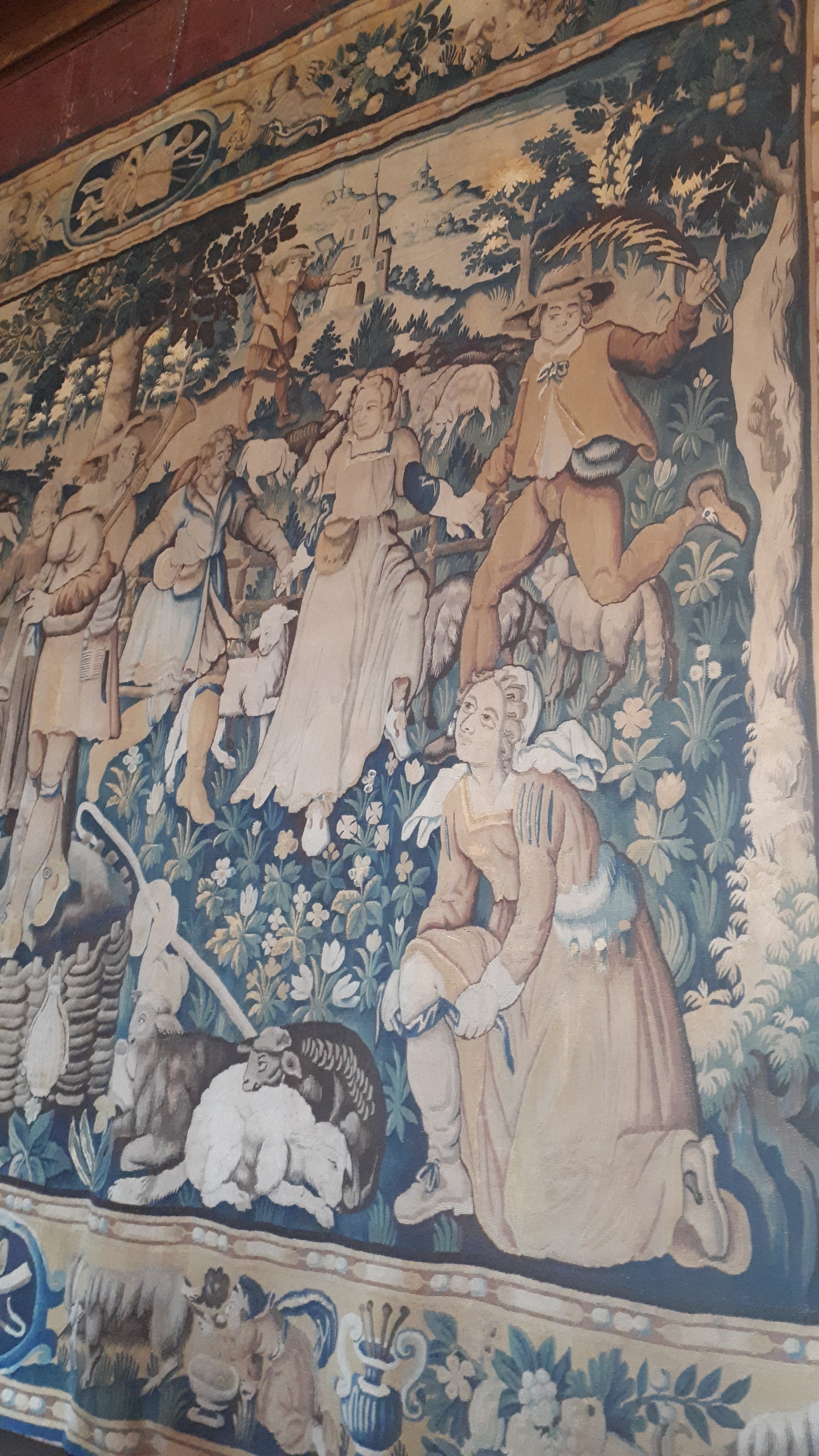 De nombreuses tapisseries flamandes ornent les murs des pièces de réception et des chambres. Des rideaux en jolis tissus brochés ont été magnifiquement restaurés.
