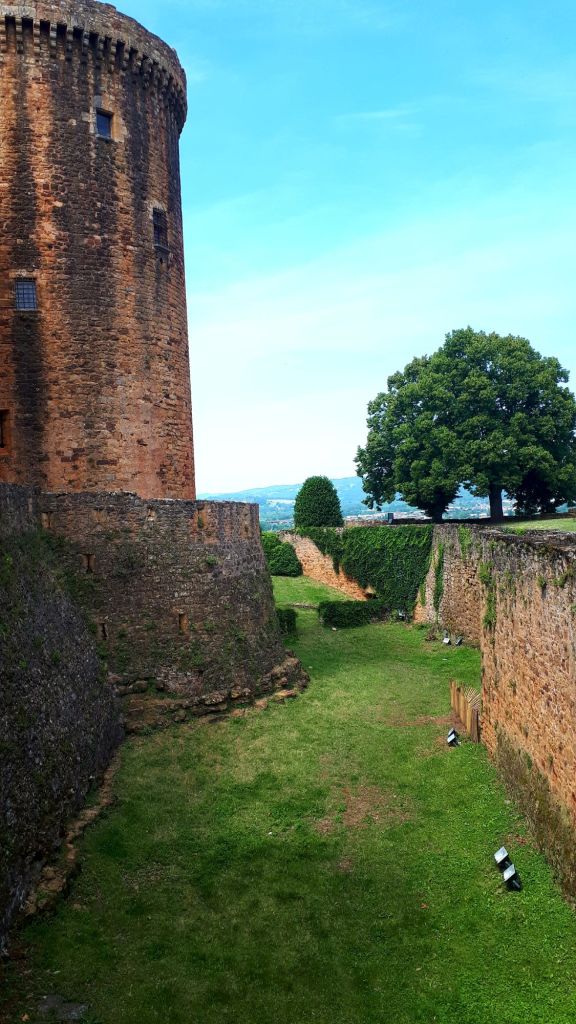 Le vaste château-fort s’est développé pendant la Guerre de Cent Ans (ici c’est l’Aquitaine) autour d’un puissant donjon élevé au 13ème siècle.
