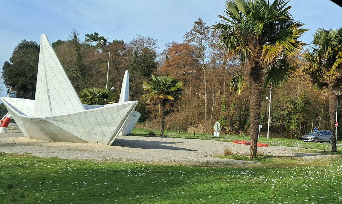 Dès l’arrivée, on est accueilli au rond-point par des bateaux de papier !