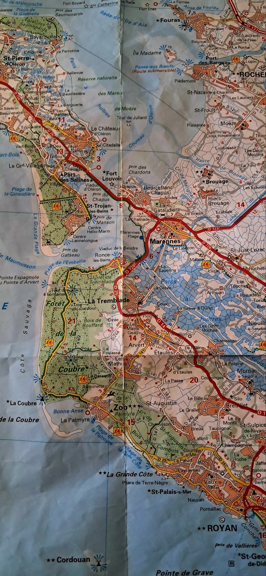 Pour les plus curieux, la carte agrandie entre Marennes et Royan.